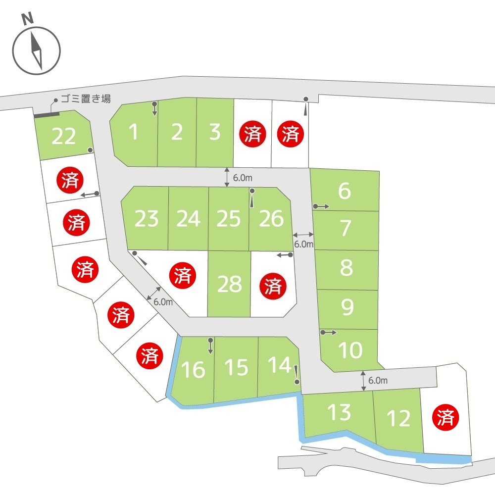 - 備考/別途水道分担金あり(110,000円 税込)、建築条件付(㈱ひらぎの)、境界ブロックのルールあり
